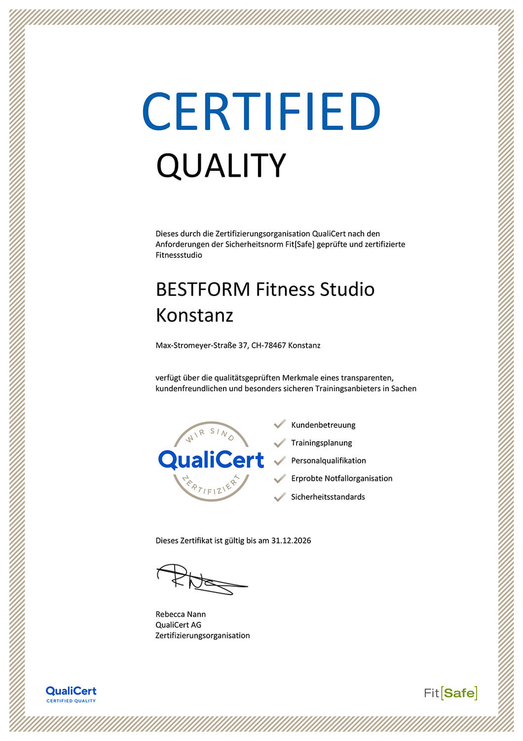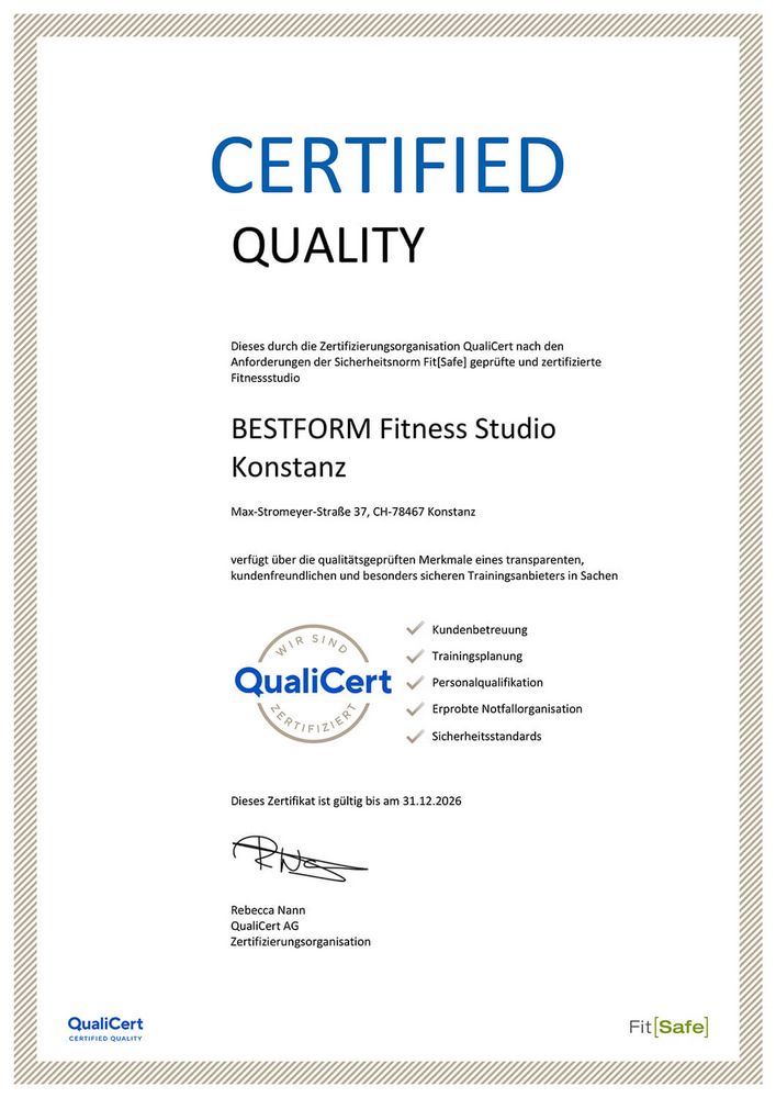 Das Bestform in Konstanz ist QUALITOP zertifiziert und bietet Ihnen umfassendes Gesundheits- und Fitnesstraining auf höchstem Niveau. Profitieren auch Sie von den Vergünstigungen und starten Sie Ihr Training bei uns, wir freuen uns auf Sie!